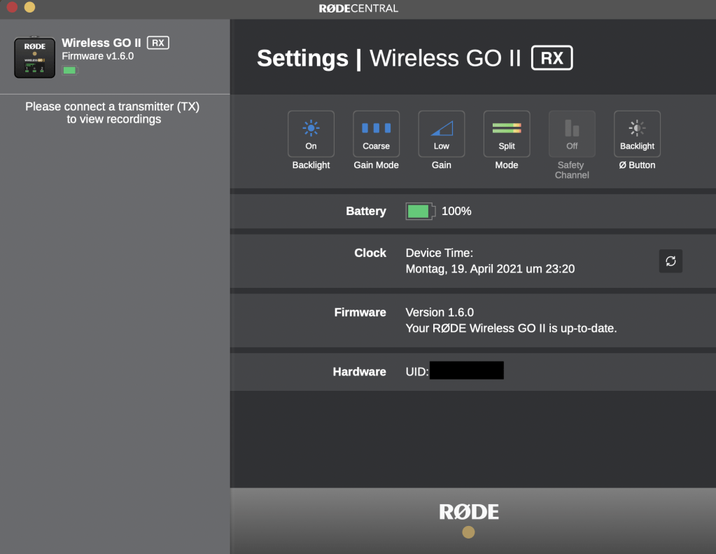 Along with the GO II, Rode released a desktop application called Rode Central which is available for free for Windows and macOS. It lets you activate and fine-tune additional features on the GO II when it’s connected to the computer. You can also access files from the onboard recording, a new feature I will talk about in a bit. A mobile app for Android and iOS is not yet available but apparently Rode is already working on it.